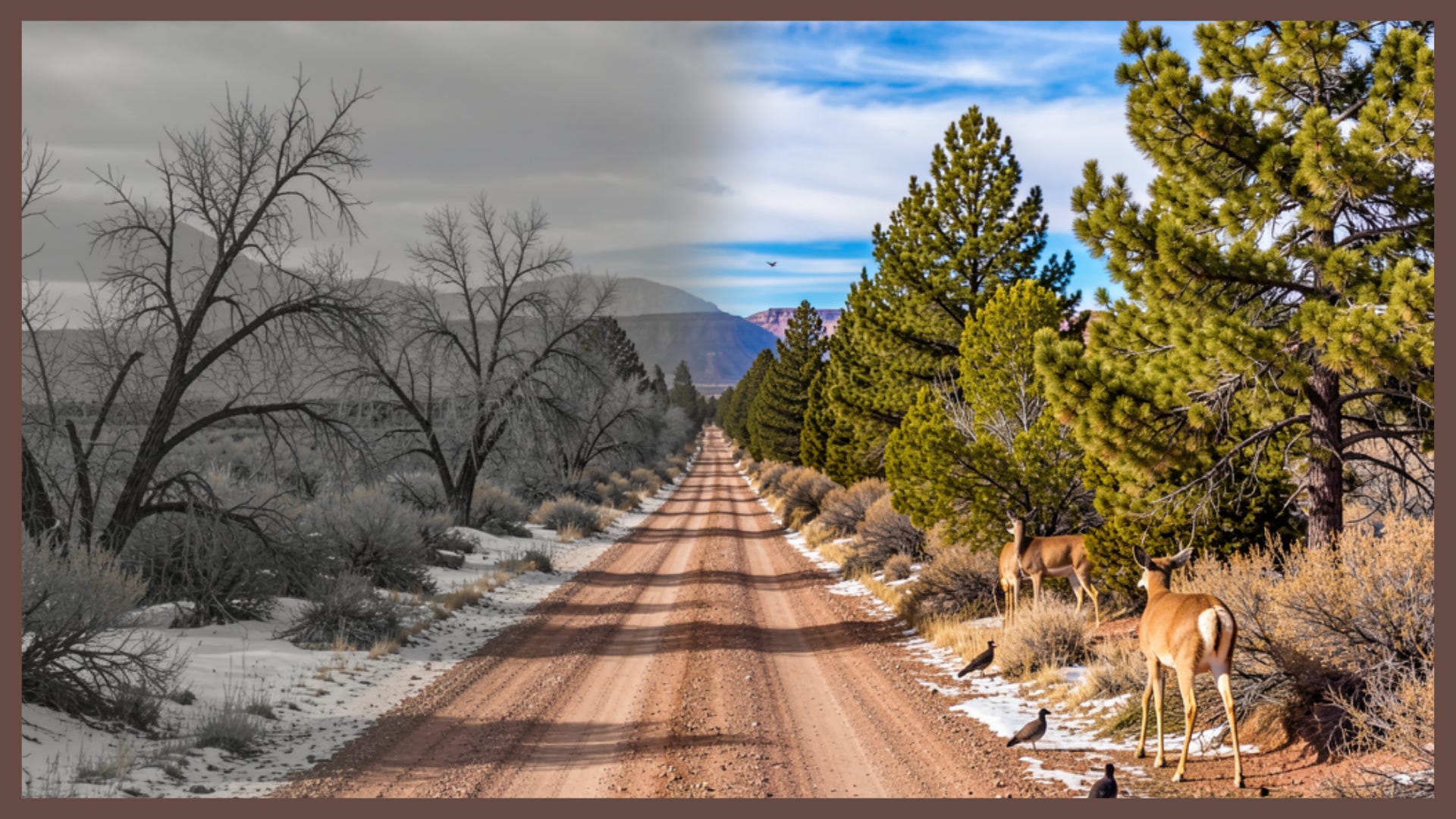 This phase isn’t a fresh start. It’s a continuation. The same deeper coherence that trained me through contact and transmission is now meeting me on an ordinary road in northern New Mexico, United States—using cottonwoods, pines, and winter sky to demonstrate the same lesson: two realities running side by side, and a third—quieter, deeper—holding them both.